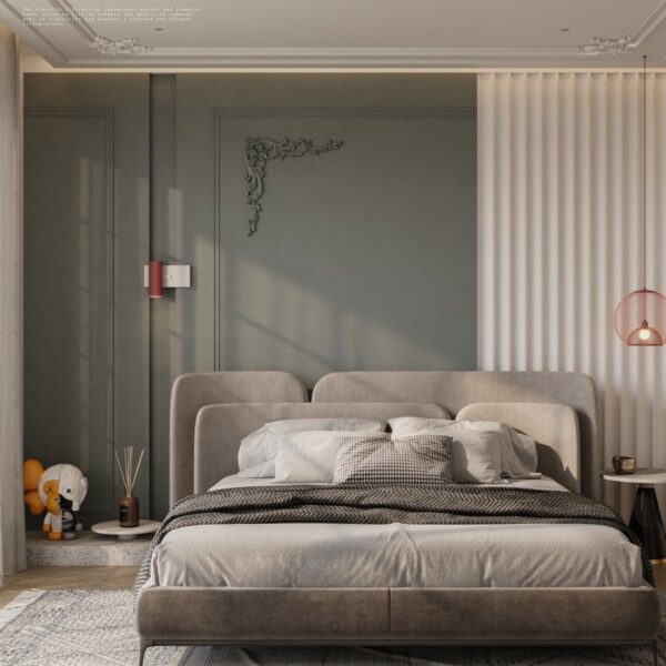 Classy fabricated bed with amazing color scheme. New creative look with amazing color scheme. Finest grey fabric with beautiful look. Further more there is twin head board. Metal legs at foot board. The best shape with creative look.